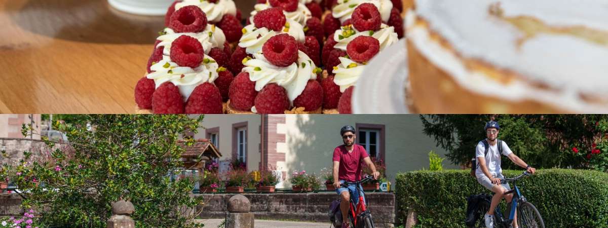 Un après-midi en roue libre, le goûter « ambiance cosy » en cadeau ! Tarte aux myrtilles ou au fromage blanc, douceurs pâtissières et boisson chaude, de quoi vous ressourcer et refaire le plein d'énergie. Choisissez votre étape parmi 6 lieux gourmands, nous vous proposons le circuit idéal pour votre « Kaffeeklatsch ».